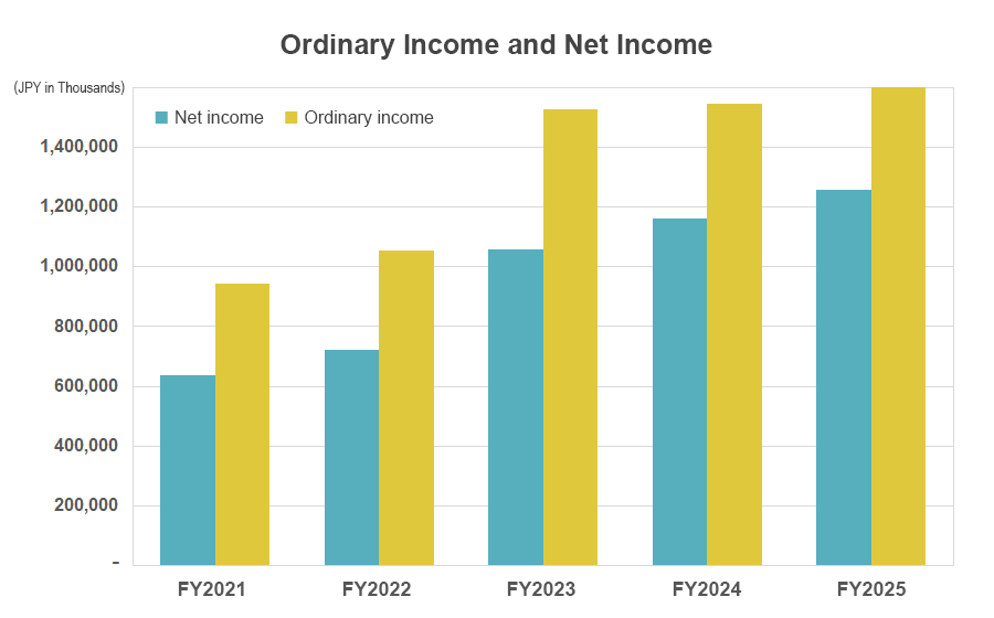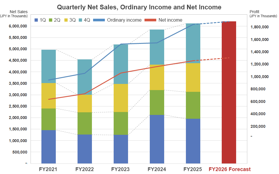 Quarterly Net Sales, Ordinary Income and Net Income| FY2021 | FY2022 | FY2023 | FY2024 | FY2025 | |