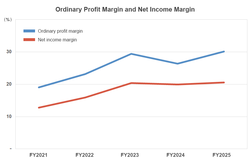 | Ordinary profit margin (%) | 19.0 | 23.2 | 29.4 | 26.4 | 30.1 |