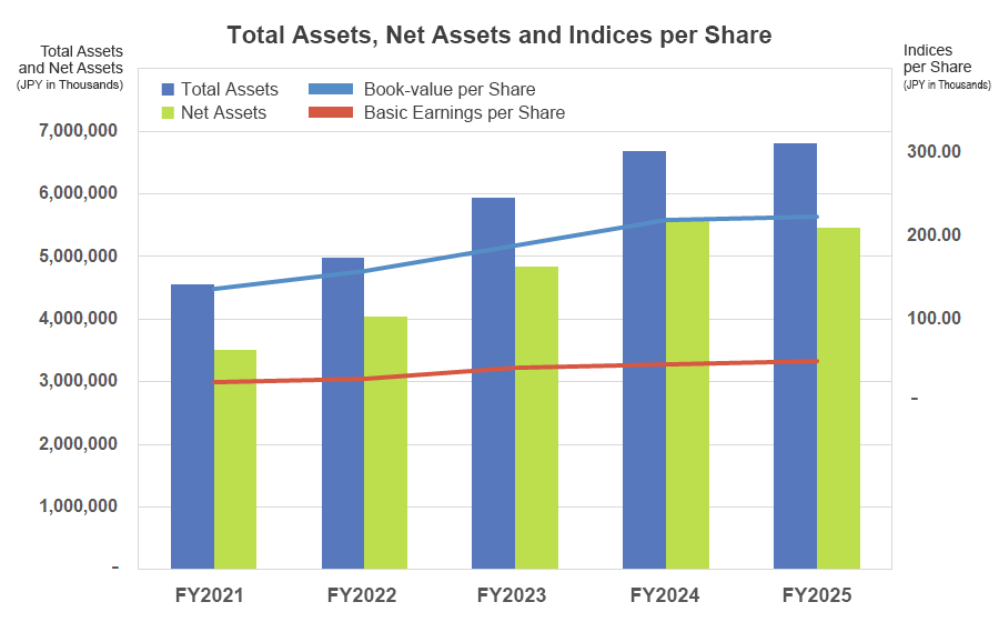 | Net assets (JPY in thousands) | 3,512,533 | 4,042,937 | 4,845,360 | 5,607,191 | 5,467,095 |