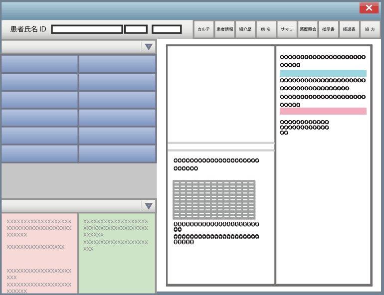 診療記事記載システム C-Noteは、電子カルテのテンプレート機能だけでは十分なカルテ記載が難しい診療科におけるカルテ記載の問題を解決するシステムです。特に、眼科・耳鼻咽喉科・産科といった自科検査の多い診療科においては、紙カルテイメージで自由に画像・数値・文字列等を配置しストレスなく診療記事を記載することができます。