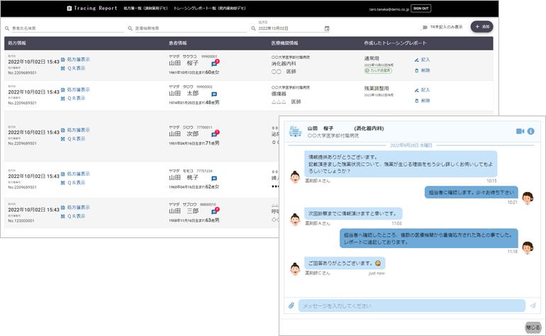 医療機関と薬局間でチャット機能が提供されます。リアルな情報共有が可能になります。