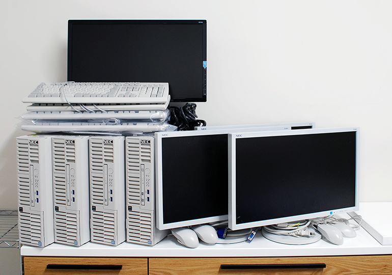 PCはデータ削除等の処理を実行し、使用できる状態に再セットアップしたうえで寄贈先にお渡しします。